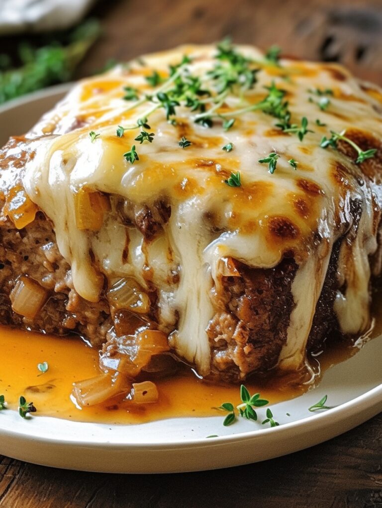 Pain de viande à l’oignon français et au fromage suisse fondu à la mijoteuse
